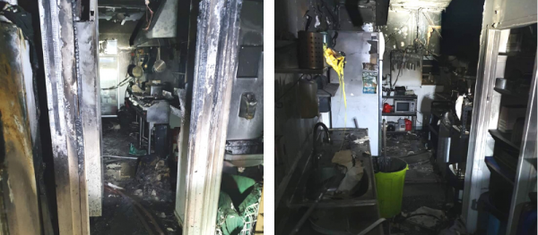 The fire caused substantial damage to the restaurant's kitchen and dining area.